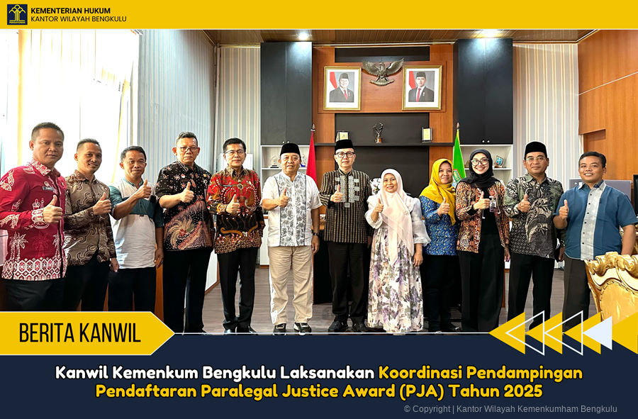 Kab. Seluma – Bertempat di Kantor Bupati Kabupaten Seluma, telah dilaksanakan kegiatan koordinasi pendampingan pendaftaran Paralegal Justice Award (PJA) Tahun 2025 yang dihadiri langsung oleh Kepala Divisi Peraturan Perundang-undangan dan Pembinaan Hukum Tongam Renikson Silaban, JF Penyuluh Hukum, serta perwakilan Kepala Desa/Lurah dari Kabupaten Seluma, Kamis (6/3/2025).