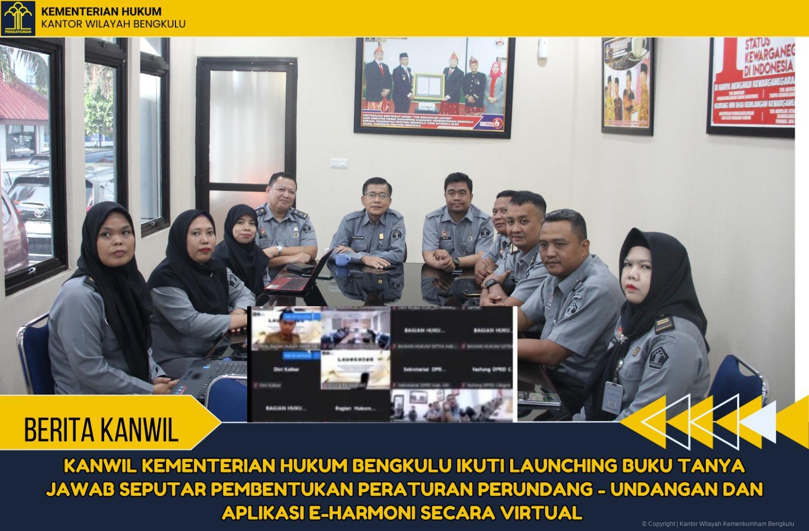 Bengkulu, 25 Februari 2025 – Kantor Wilayah Kementerian Hukum Bengkulu turut serta dalam kegiatan Launching Buku Tanya Jawab Seputar Pembentukan Peraturan Perundang-Undangan dan Aplikasi e-Harmonisasi yang diselenggarakan secara virtual melalui Zoom Meeting. Bertempat di Ruang Rapat Divisi Yankum Kanwil Kementerian Hukum Bengkulu, kegiatan ini diikuti oleh Kepala Divisi Peraturan Perundang-Undangan dan Pembinaan Hukum, Tongam Renikson Silaban, beserta seluruh Perancang Peraturan Perundang-Undangan Kanwil Kementerian Hukum Bengkulu.
