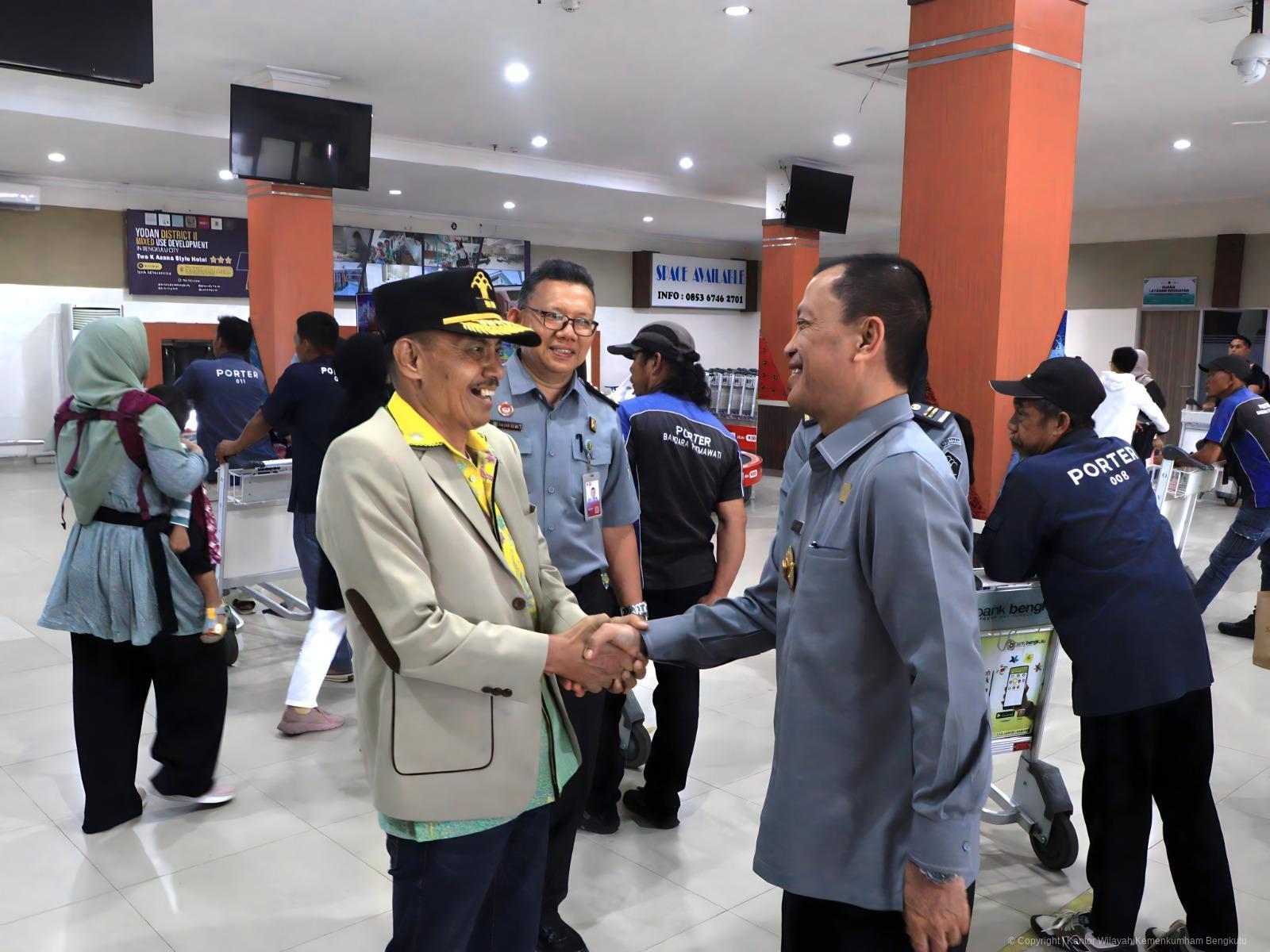 BENGKULU - Kepala Kantor Wilayah Kementerian Hukum Bengkulu, Sasmita tiba di Provinsi Bengkulu dengan didampingi dengan pesawat Garuda, Senin (30/12/2024). Turut hadir menyambut di bandara Fatmawati Soekarno, Kakanwil Kementerian Hukum dan Ham Bengkulu, Santosa, para pejabat struktural, JFT, dan JFU di lingkungan Kementerian Hukum Bengkulu.